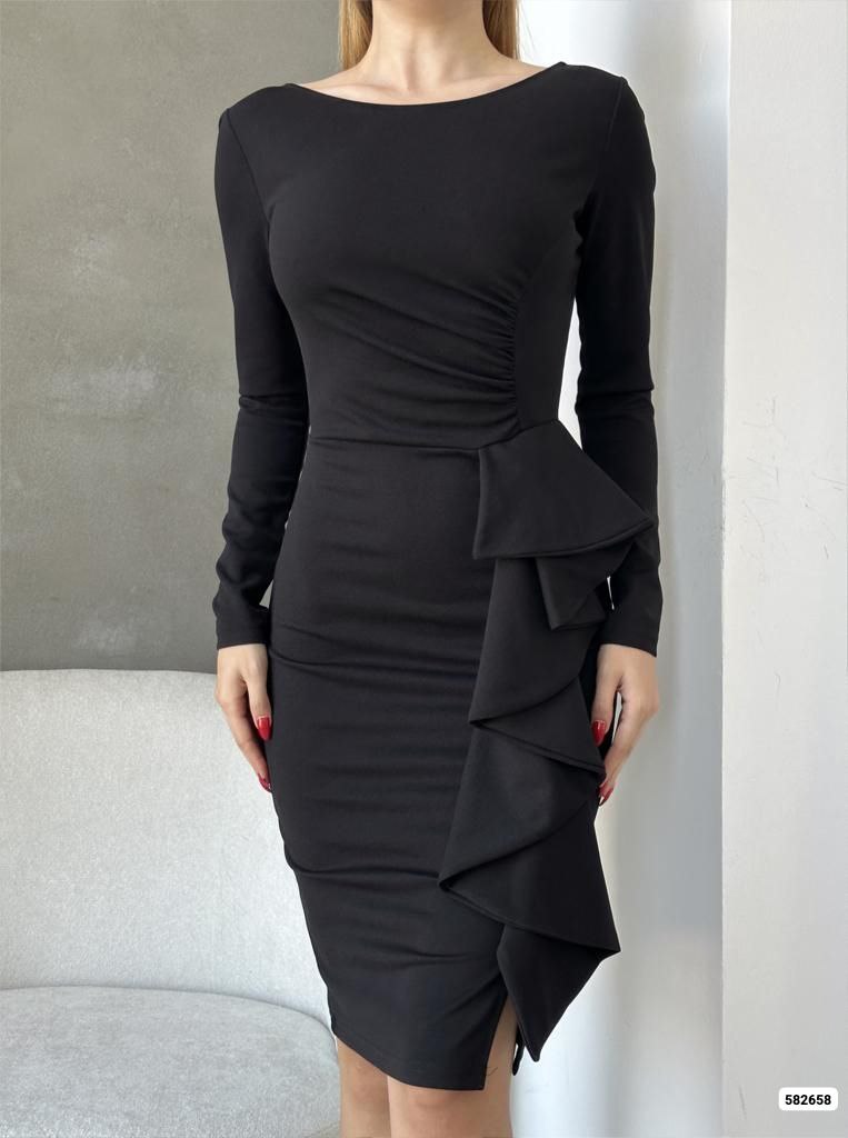 Toptan Bayan Giyim Wholesale Merter Tekstil İmalatçıları Gipeli Volanlı Sırt Dekolte Krep Elbise