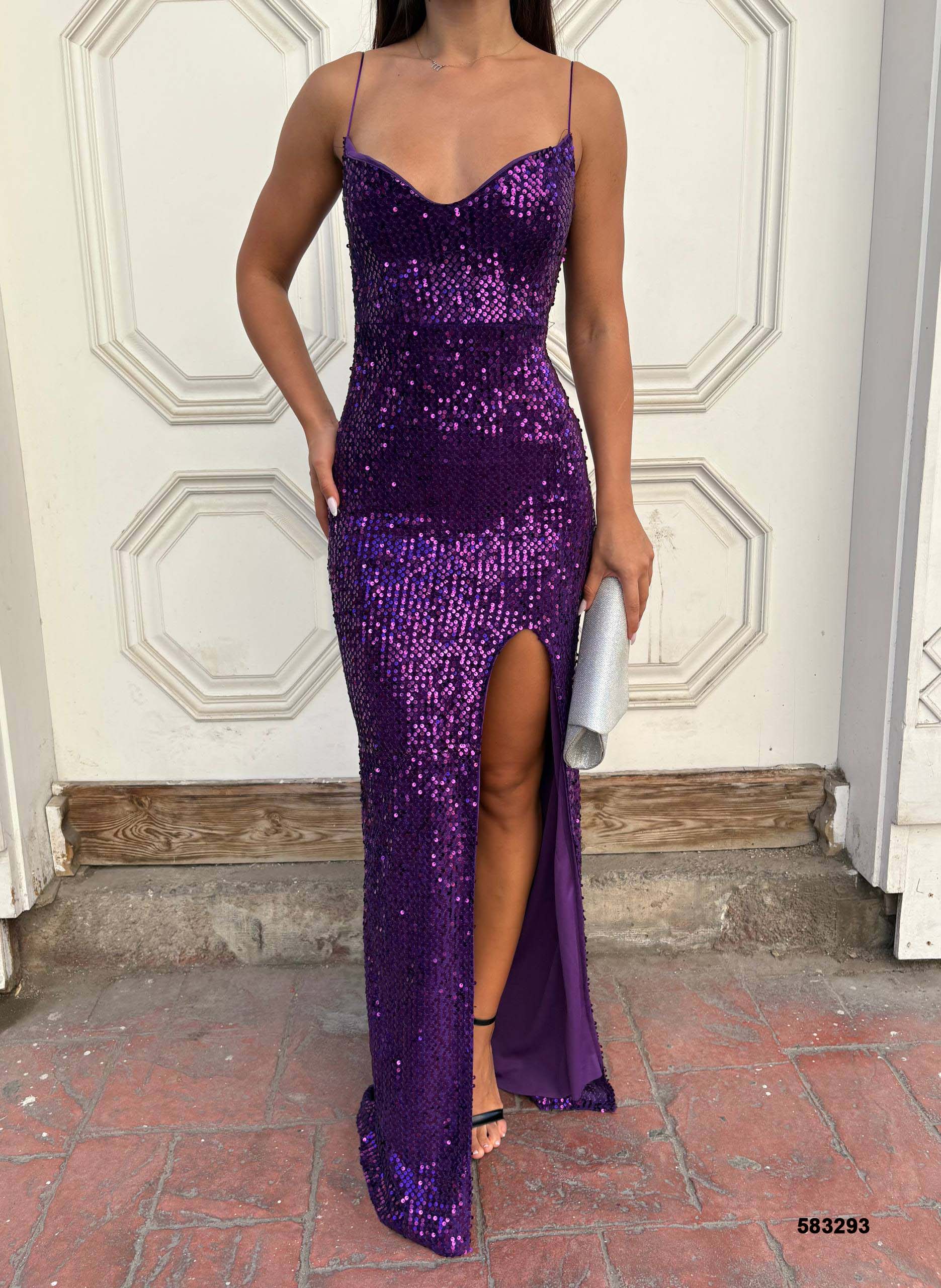 Toptan Bayan Giyim Wholesale Merter Tekstil İmalatçıları Askılı Yırtmaçlı Kadife Pulpayet Abiye Elbise – 3 Renk – WGS 583293