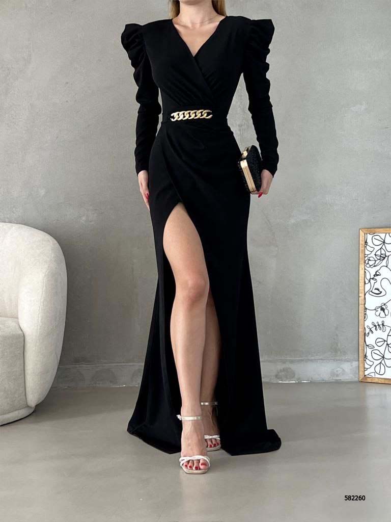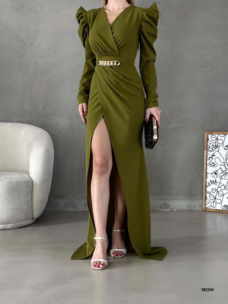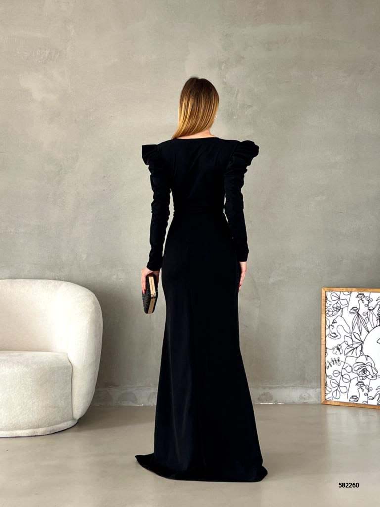 Toptan Bayan Giyim Wholesale Merter Tekstil İmalatçıları Omuz Detay Metal Aksesuarlı Krep Abiye Elbise – 5 Renk – WGS 582260