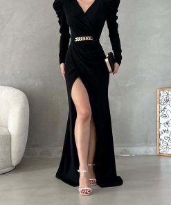Wholesale Women’s Clothing Wholesale Merter Osmanbey Laleli Tekstil Manufacturers Crepe Evening Dress with Shoulder Detail Metal Accessories 10 $ – 5 Colors – 2 S, 2 M, 2 L Size 6 Piece Series – WGS 582260