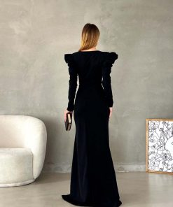 Toptan Bayan Giyim Wholesale Merter Tekstil İmalatçıları Omuz Detay Metal Aksesuarlı Krep Abiye Elbise