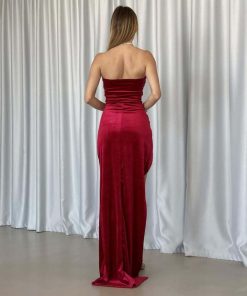 Toptan Bayan Giyim Wholesale Merter Tekstil İmalatçıları Uzun Yırtmaçlı Gipeli Strablez Kadife Abiye Elbise – 6 Renk – 2 S, 2 M, 2 L Beden 6’lı Seri – WGS 582636