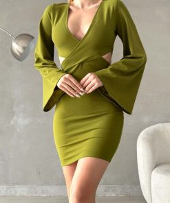 Wholesale Women’s Clothing Wholesale Merter Textile Manufacturers Spanish Sleeve Waist Detail Double Breasted Crepe Dress 8.5 $ – 6 Colors – 2 S, 2 M, 2 L Size 6 Piece Series – WGS 582735