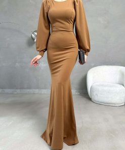 Wholesale Women’s Clothing Wholesale Merter Textile Manufacturers Crew Neck Shoulder Detail Crepe Fish Dress 12 $ – 6 Colors – 2 S, 2 M, 2 L Size 6 Piece Series – WGS 582744